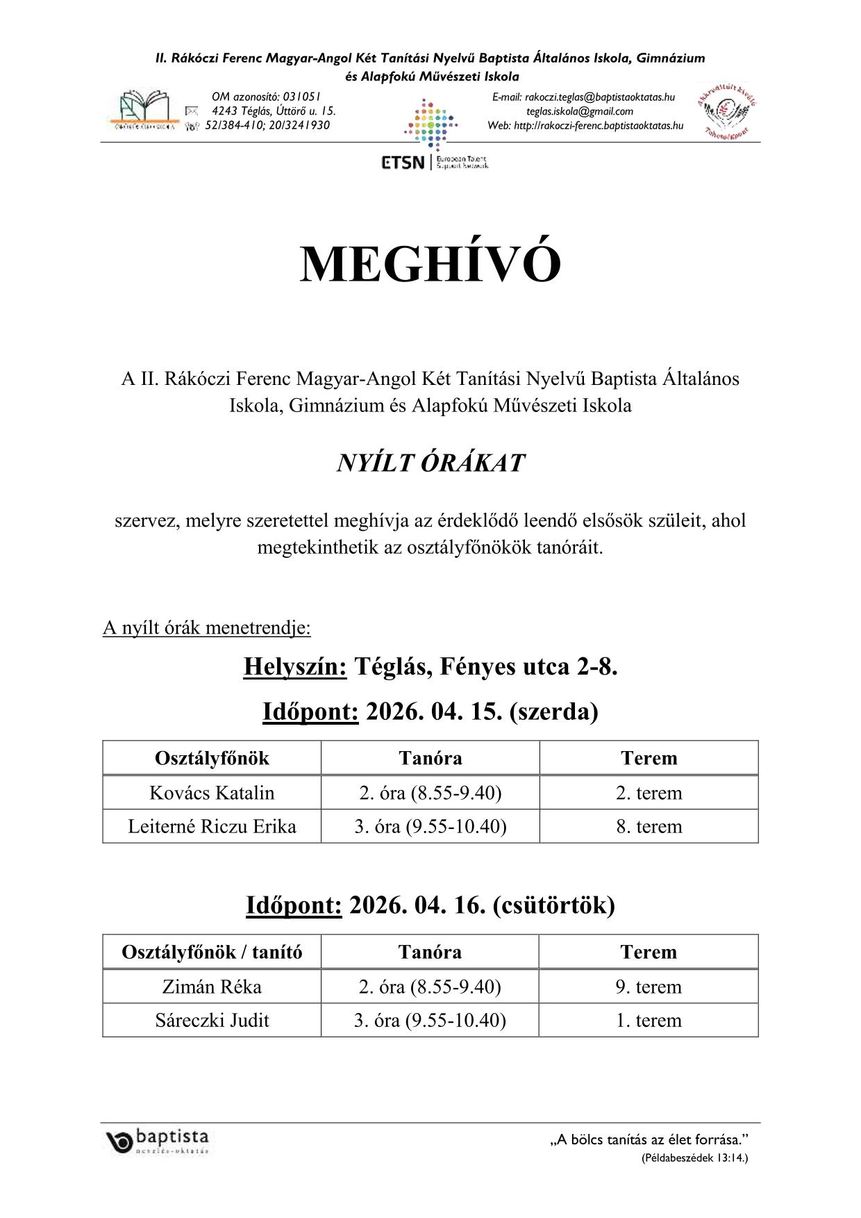 Beiskolázási tájékoztató