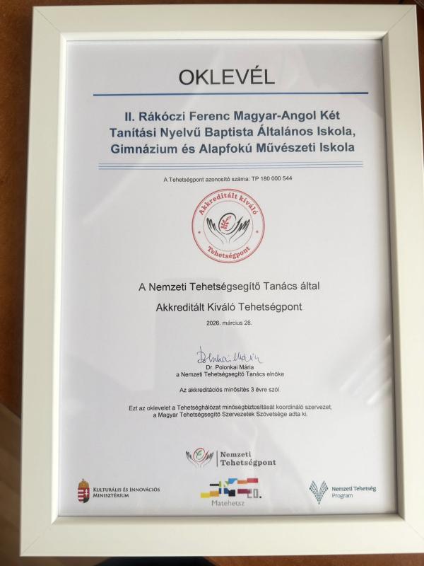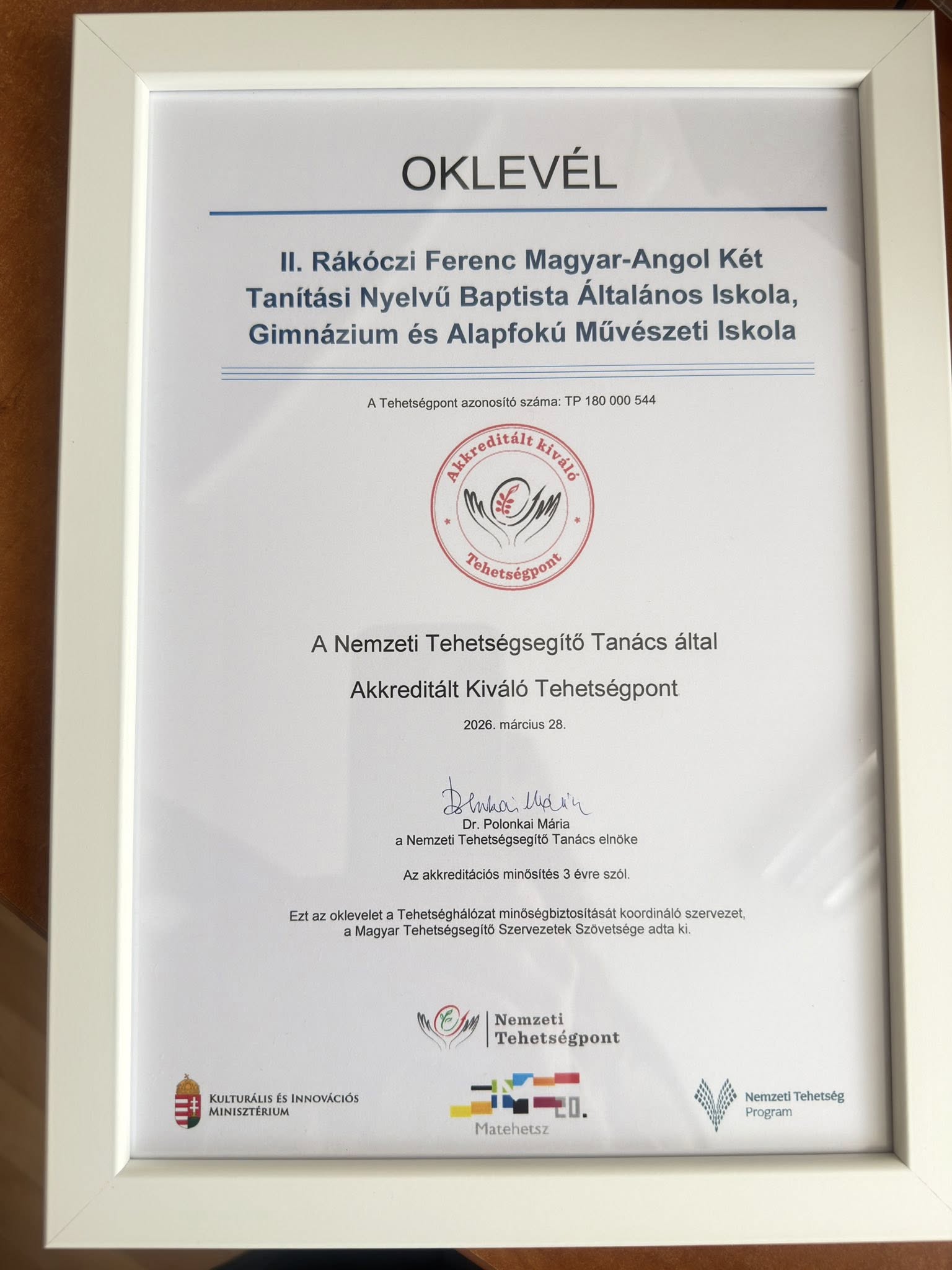 Iskolánk tehetségműhelyei (angol, matematika, közlekedési) kiváló munkájuk eredményeként ismét kiérdemelték az Akkreditált Kiváló Tehetségpont címet.