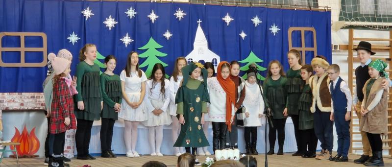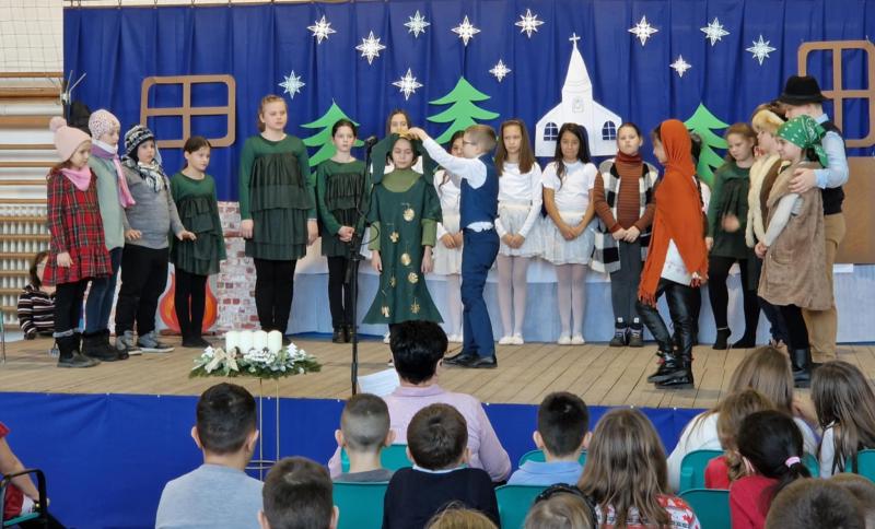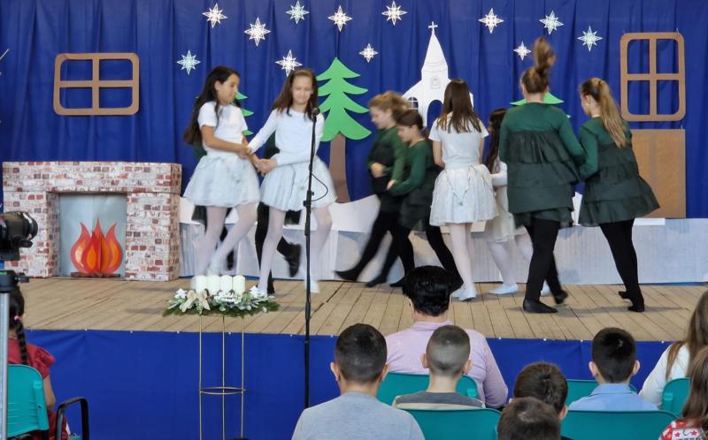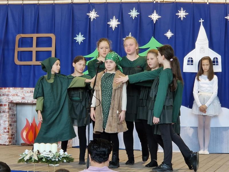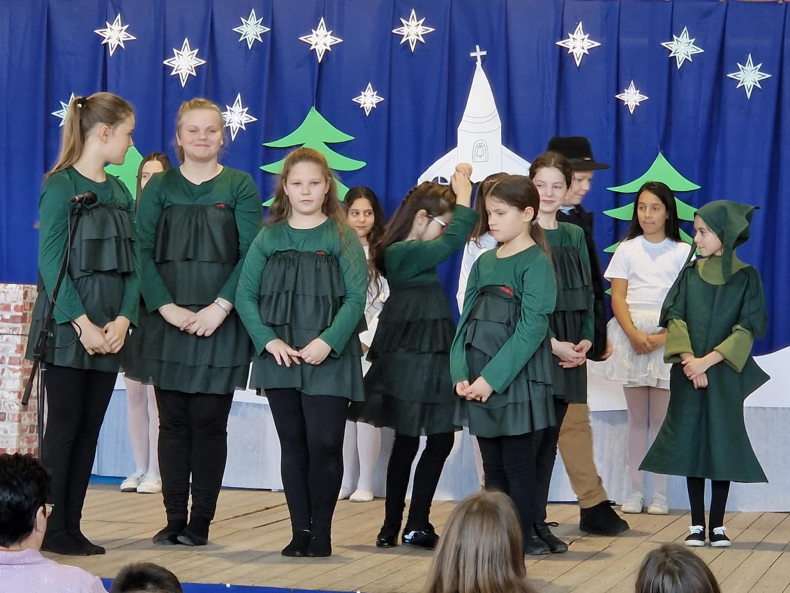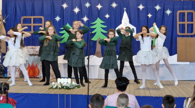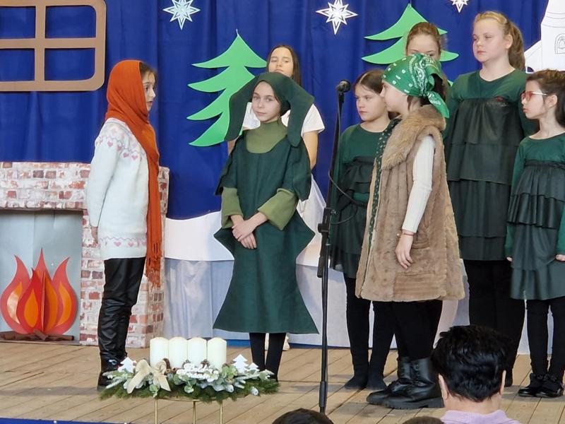 Ezután közösen megtekintettük a negyedik osztályosok karácsonyi műsorát, melynek címe Boris néni karácsonyfái. A diákok nagy lelkesedéssel készültek, és előadásukkal igazi ünnepi hangulatot varázsoltak számunkra. Az előadás egyszerre volt ünnepélyes és szívet melengető, de a történet mindenkit emlékeztetett arra, hogy a karácsony igazi lényege a szeretet, az odafigyelés és az együtt töltött pillanatok.