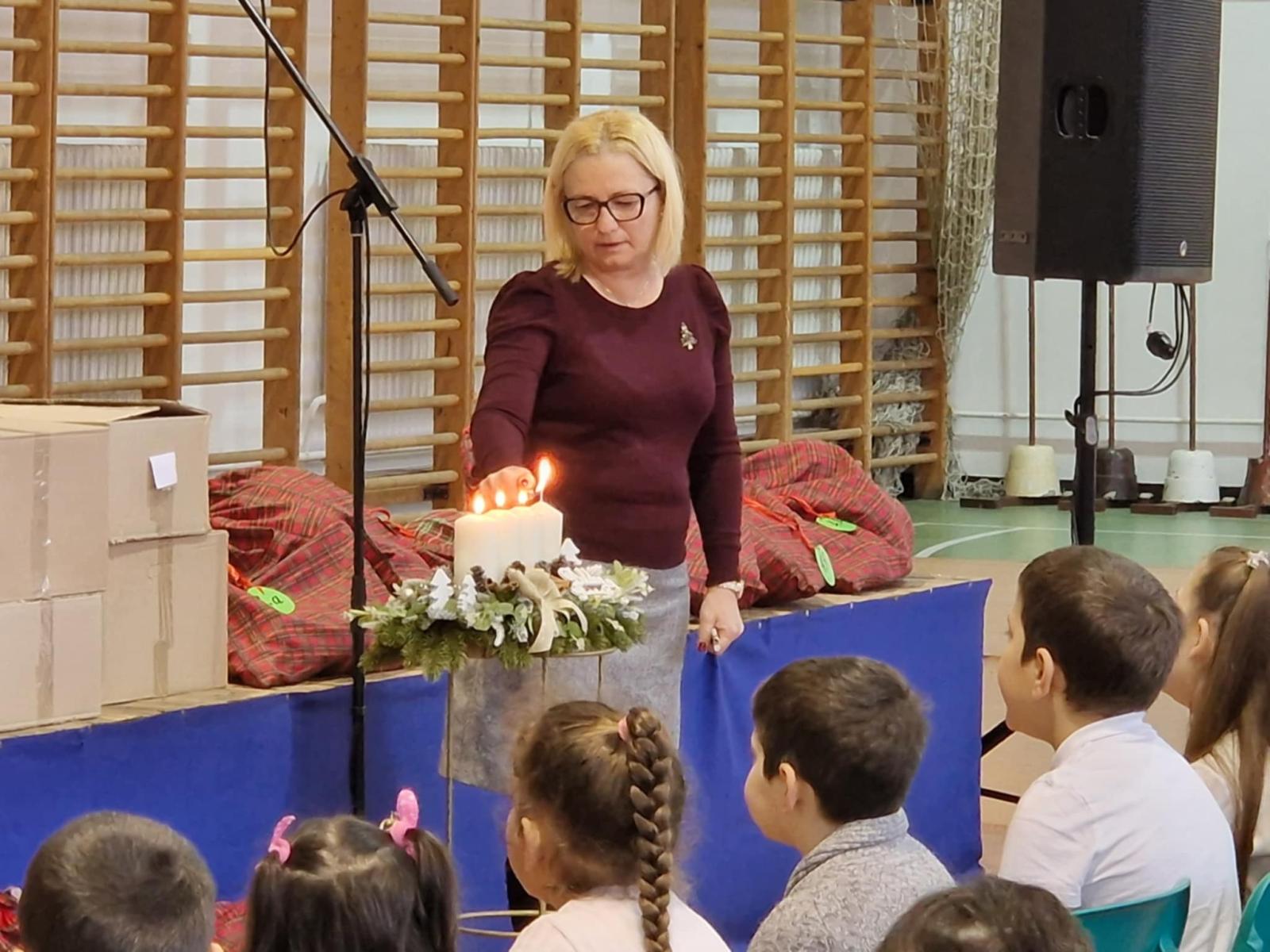 2025. december 19- én reggel Pető András baptista lelkész gondolataival indult a téli szünet előtti utolsó tanítási nap. Majd meggyújtottuk az iskola adventi koszorúján a negyedik gyertyát, mely a szeretet jelképe. A közös éneklés után, minden osztály átvehette Szilágyiné Bodnár Erzsébet főigazgatónőtől az iskola Jézuskájának ajándékát.