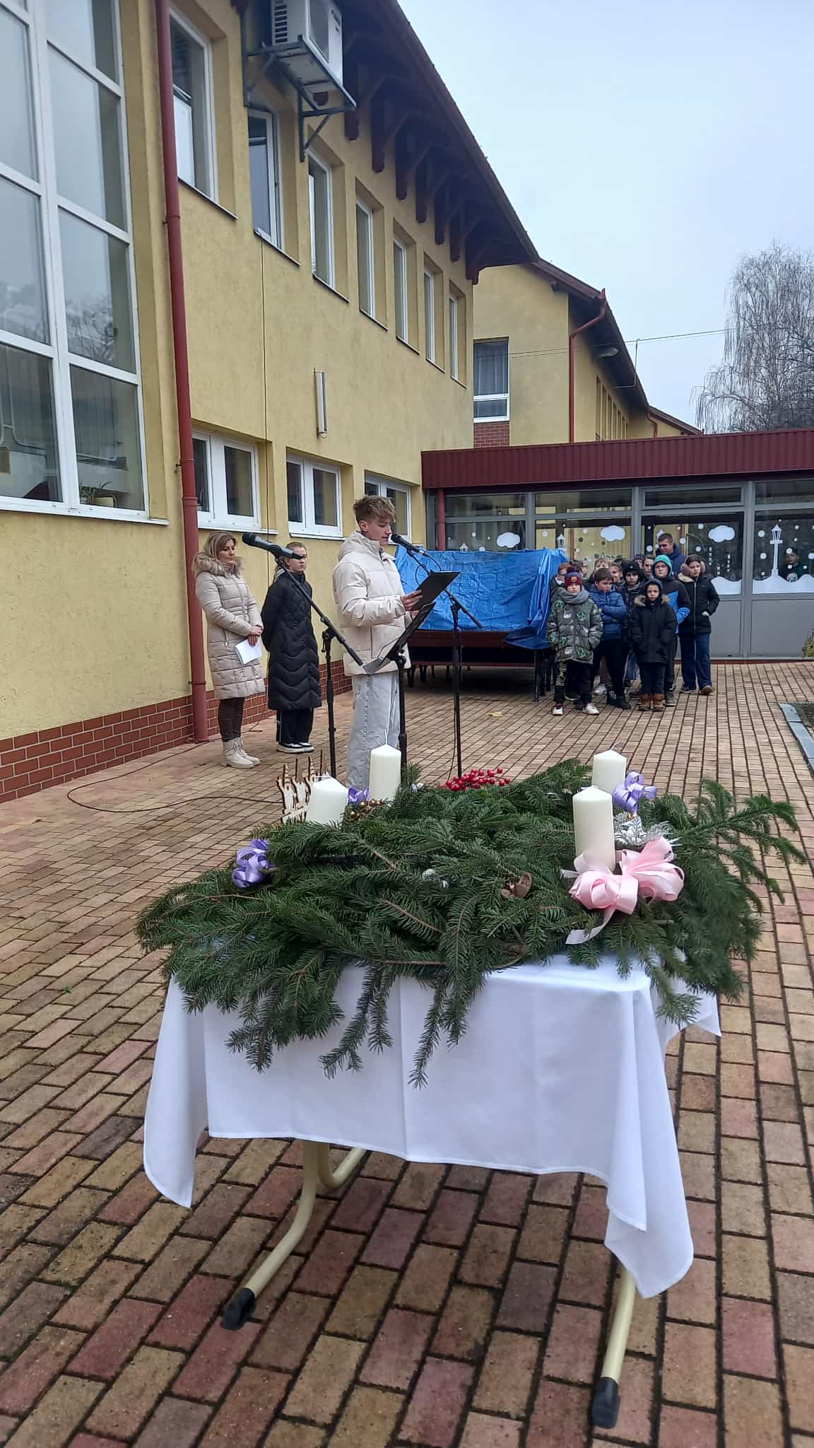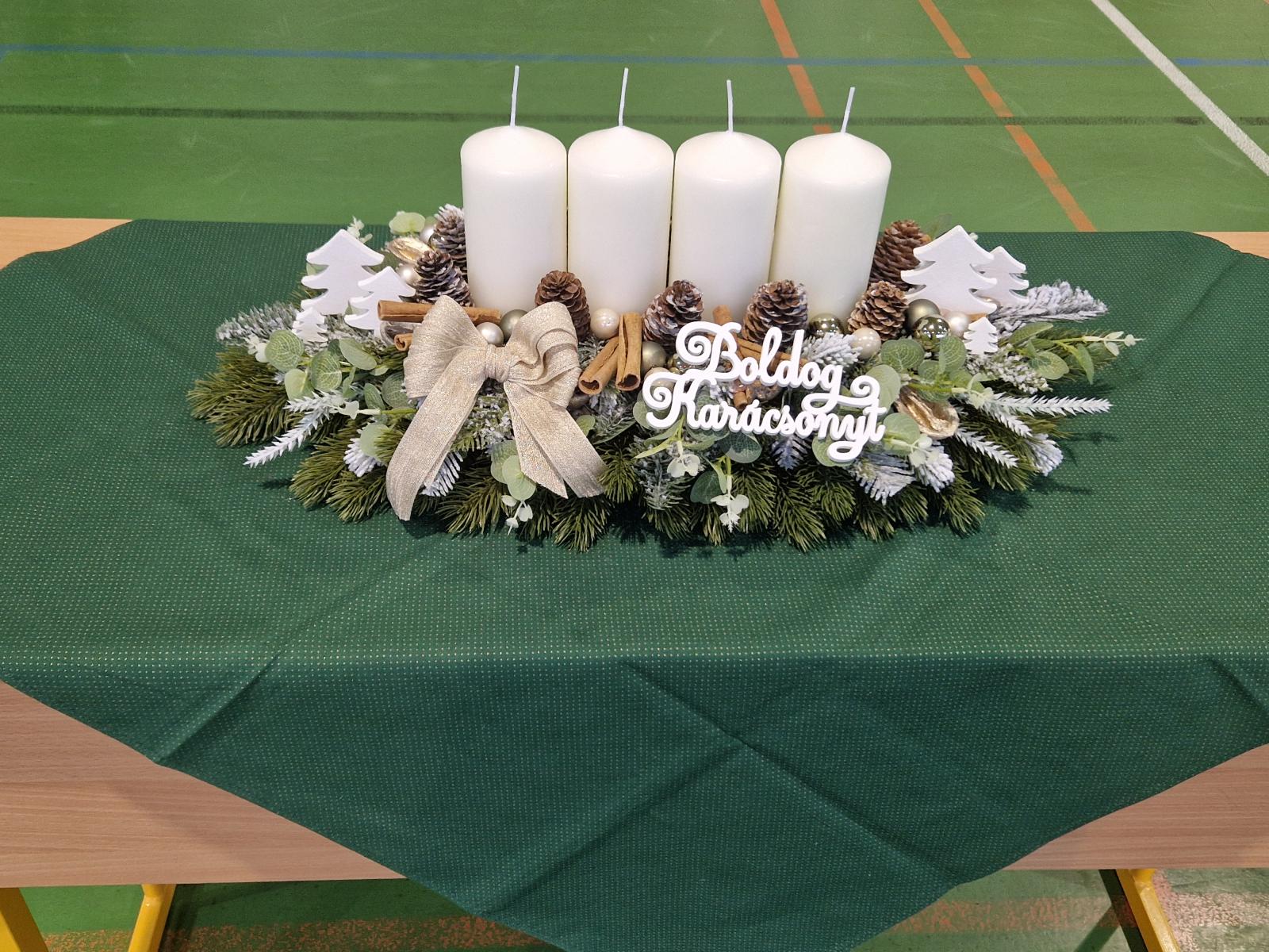 A Karácsony közeledtével elkezdődik a nagy várakozás, készülődés, amely időszakot adventnek szoktuk nevezni. A diákönkormányzat tagjai az ünnepek közeledtével az iskolát ünnepi díszbe öltöztették, közösen elkészítettük a tagozatok adventi koszorúit, amelyet a díszudvaron helyeztünk el. Tettük ezt nagy-nagy szeretettel, hogy örömet okozzunk és reméljük a külsőségeken túl mindenki szívvel és lélekkel is készül, felkészül az elkövetkezendő időszakban!