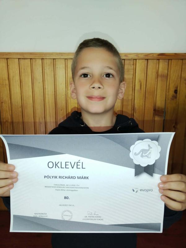 Külön öröm és hatalmas büszkeség számunkra, hogy Balogh András 4.a osztályos tanulónk ugyanezen a versenyen országos szinten a 13. helyen végzett. Ilyen kimagasló eredmény még nem született iskolánk történetében. Andris a Mozaik Kiadó által megszervezett országos matematika versenyen szintén 1. helyezést ért el, ami tovább emeli teljesítményének értékét. Ez a siker a diákok kitartó munkáját és a felkészítésbe fektetett energiát dicséri.